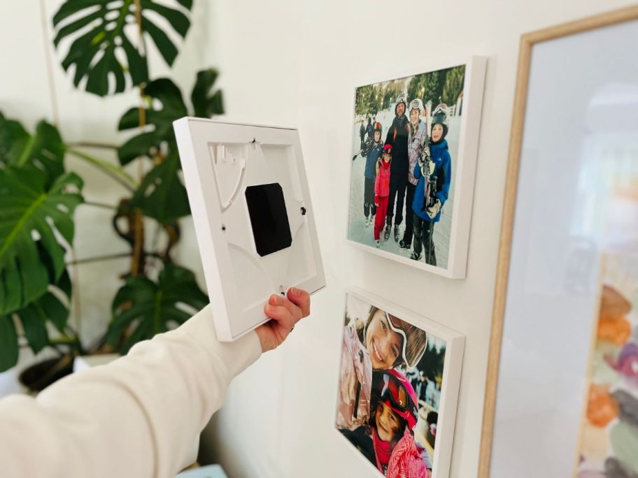 These lightweight photo tiles stick to your wall with special magnetic pads, so there are no nails, no mess, and no damage.
