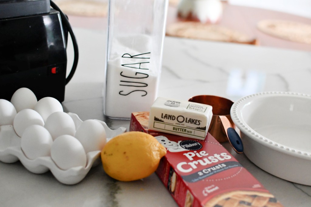 Add the lemon, eggs, butter, and sugar to a blender. Blend for 20 seconds or so until combined. Pour the mixture into the pie crust.