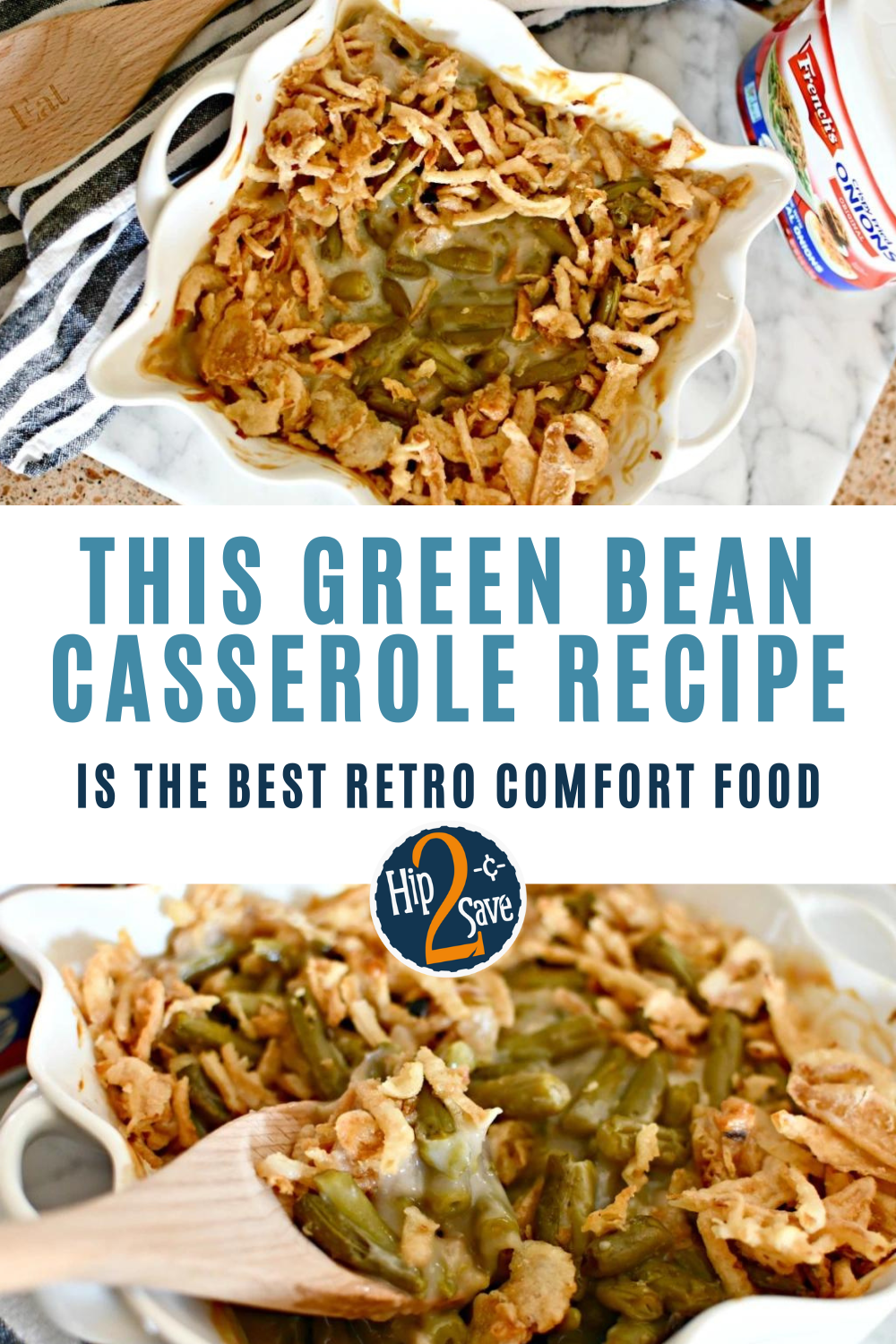 I actually enjoy yummy holiday-inspired side dishes all year long. Every family has their own traditions and recipe favorites, and creamy green bean casserole with those yummy crunchy onions is definitely one of ours. It’s EASY to make, has nostalgic retro vibes, and it’s usually the first dish to disappear.