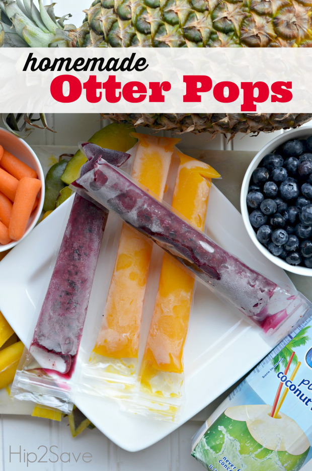 If your kids beg for Otter Pops every day during the summer like mine do, then check out this easy way to make your own homemade version! The best part is that you can customize them with healthier dye-free ingredients according to what your kids love and use whatever fruit and juice combinations you happen to have in your fridge or freezer. Make them ahead of time and pack as a portable snack in a lunchbox with a freezer pack.