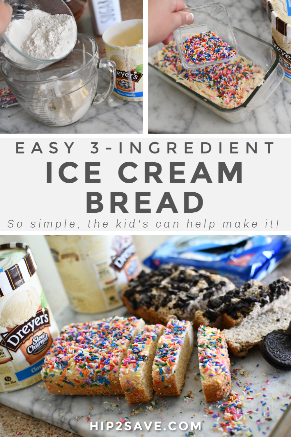 - For sprinkles ice cream bread: Use vanilla ice cream and 1/4 cup rainbow sprinkles.