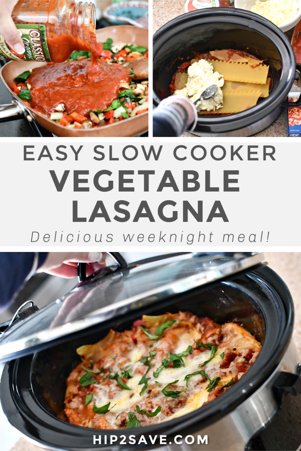 Here's a delicious veggie lasagna with 3 types of cheeses that can be made right in the Crock-Pot slow cooker!