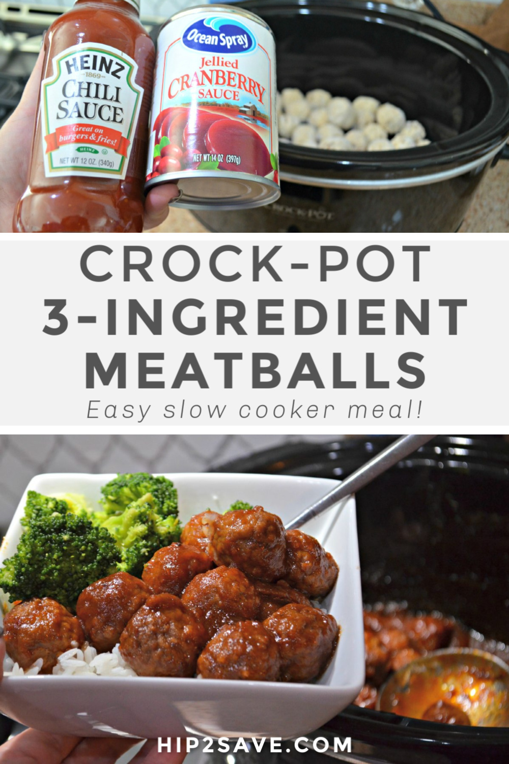 Here’s how you can turn them into a super easy 3 ingredient CrockPot recipe idea! These delicious cranberry chili sweet and sour meatballs require just a few common pantry and freezer ingredients and take just a few hours in the Crockpot slow cooker.