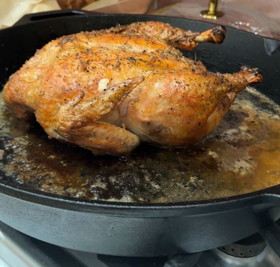 It’s one of those basic kitchen skills that feels a little old-fashioned and incredibly empowering at the same time. With just a few simple ingredients and a cast-iron skillet, you can turn a whole chicken into a comforting meal that feeds a family, creates leftovers, and builds confidence in the kitchen. No fancy marinades. No complicated steps.