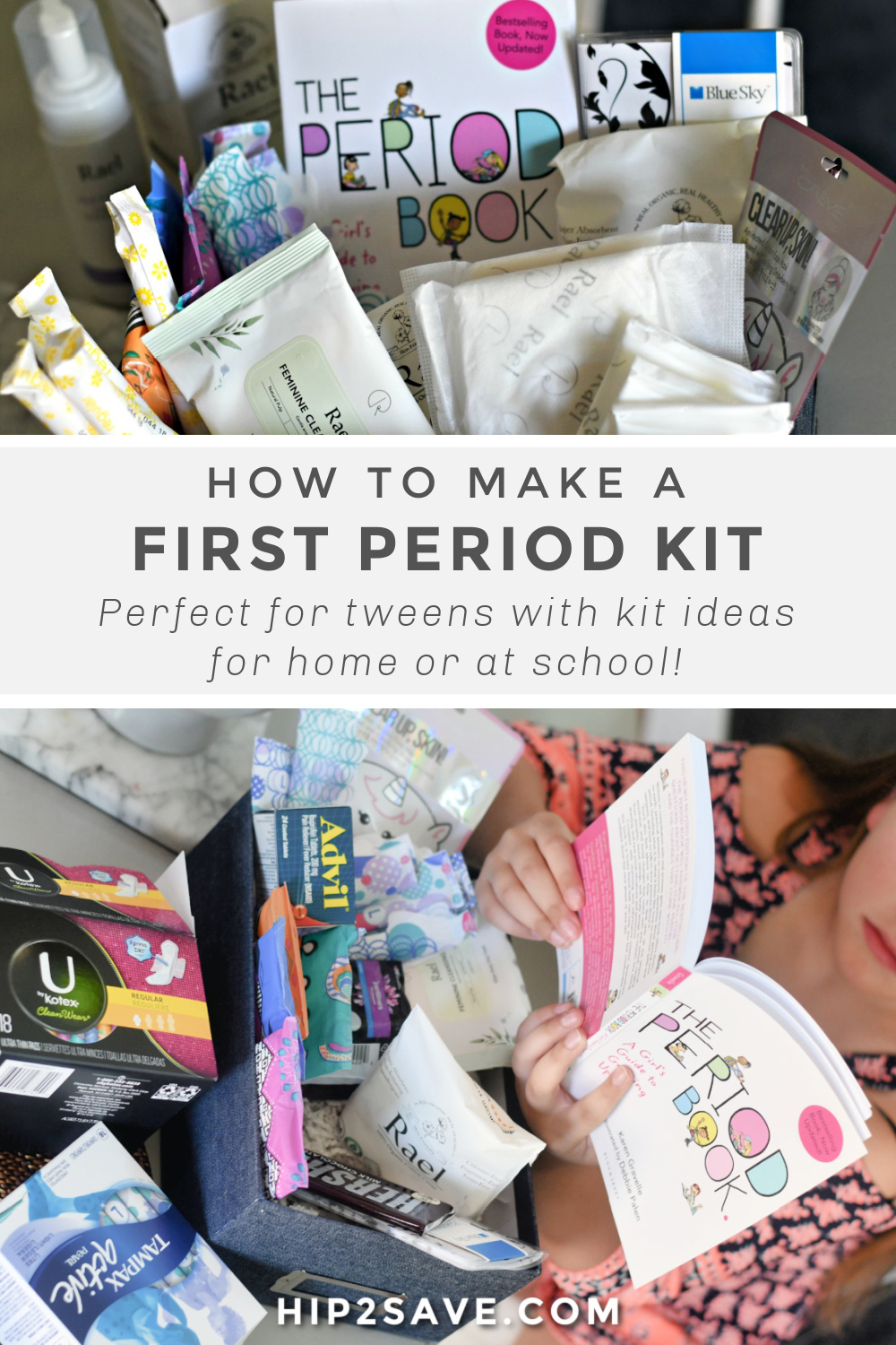 I would leave out tampons/cups from any period box. Kids should not use those. I would also leave out any medicine if the kit is meant to be carried at school. Schools in my area have a zero-tolerance rule about drugs. Sending your kid to school with advil is a quick way to get her suspended. Lastly, I would leave out period panties. Those kind of things promote poor hygiene and are downright disgusting.